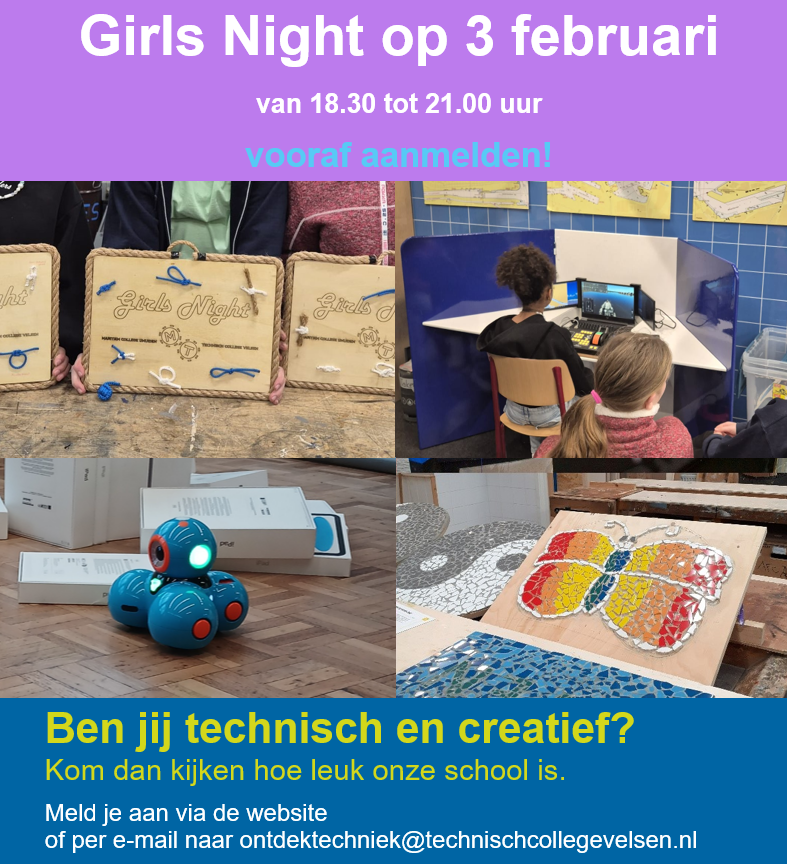 Wil jij weten hoe leuk onze school is, meld je dan aan voor de Girls Night.