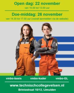 Kom naar onze Open dag en maak kennis met de leukste technische vmbo school! Of meldt uw zoon of dochter aan voor de Doe-middag. Tijdens de Doe-middag gaan de kinderen